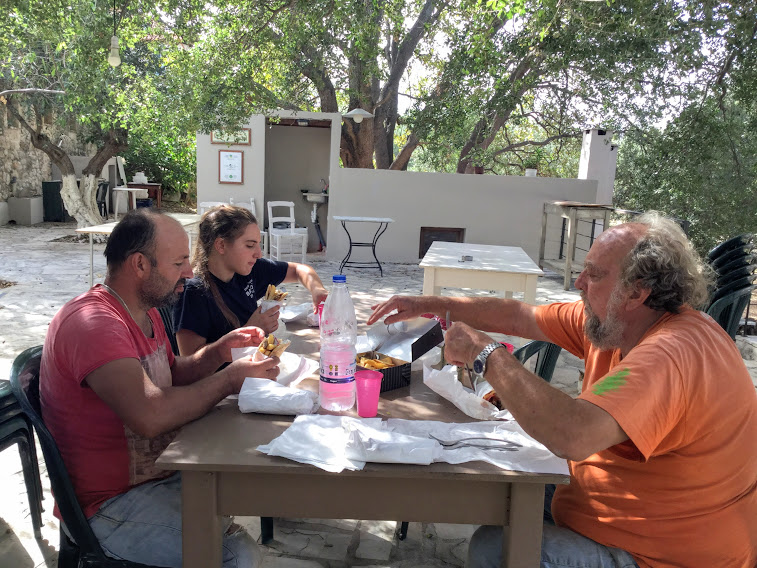 Puolen päivän jälkeen oli lounastauko. Ilias ja Konstantina saivat kolmen tunnin vapaan ja palaavat puoli viideltä jatkamaan. On liian kuumaa nyt keskipäivällä.