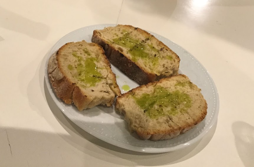 Isäntä paahtoi leipäsiivut avotulella, pirskotti päälle muutamia tippoja. Me kaikki ympärillä olevat nuuhkimme nenä pitkänä: aaah! Lola kaatoi lisää öljyä lautaselle ja ripotteli pinnalle muutaman merisuolarakeen sekä kuivattua oreganoa.