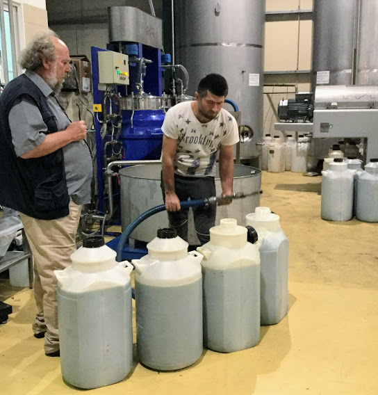 Vaivaamista seuraa kolmivaiheinen erotus, jossa massasta erotetaan toisistaan kasvisvesi, kiinteä massa ja öljy. Kun vihreä öljy alkoi juosta säiliöön, puhkesi kesä! Vihreän nurmen, vastaleikatun nurmikon tuoksu täytti ilman. Huumaava tuoksu, siihen voi jäädä koukkuun, varsinkin tällainen, jonka kesä Pohjolassa kestää vain kolme kuukautta.