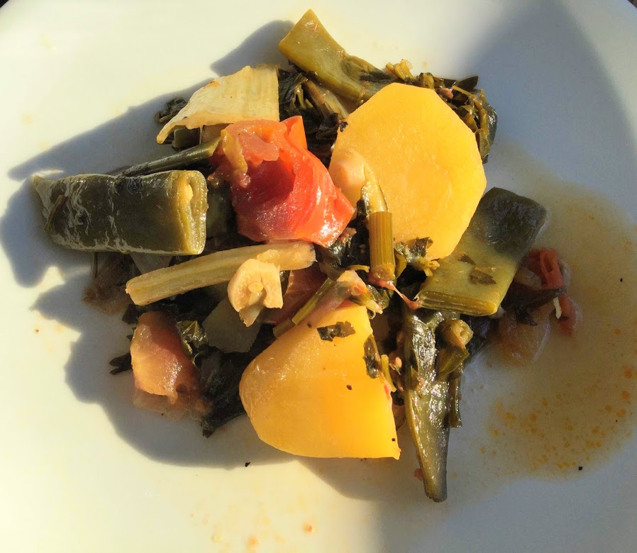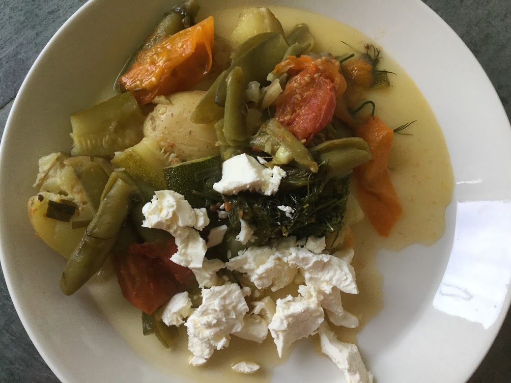 Kreetalaisilla on omat helleruokansa, kesän vihanneksien ympärille rakennetut. Sofegada kattilassa on yksi monista, toinen nimi sille on turlú turlú eli kaikkea sekaisin. Voi sen valmistaa uunissakin, mutta kattilassa sen tekeminen on helpompaa ja nopeampaa. Siihen kerätään kaikkea sitä, mitä puutarhasta löytyy, sellaisissa suhteissa kuin löytyy. Siinä voi olla juureksia, lehtivihanneksia, kaaleja, purjoa ja sipuleita, kesäkurpitsaa, perunoita…Turlú turlú on turkkia ja nimi peräisin siltä ajalta kun turkkilaiset vielä olivat saaren herrakansaa. Etelä-Italiassa tästä ruuasta jäisi pois tomaatti ja sen tilalla olisi enemmän paprikaa ja pippuria. Vastaavanlaisia kesäruokia valmistetaan kaikissa Välimeren rannikkovaltioissa, nimi vaihtuu, mutta raaka-aineet ovat niitä, mitä puutarhassa kullakin hetkellä kypsyy, maustaminen oman kulttuuripiirin mukaan.