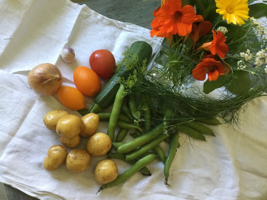 Näin heinäkuussa, varsinkin helteillä, olo on kuin Kreetalla! Iltaisin ei tarvitse miettiä ottaako nutun niskaan kylmän varalta, uimaan voi mennä milloin vain ja ruuat kevenevät. Tämän kesän onneni on kasvimaa, jonka asukit tykkäävät näistä lämpimistä säistä.