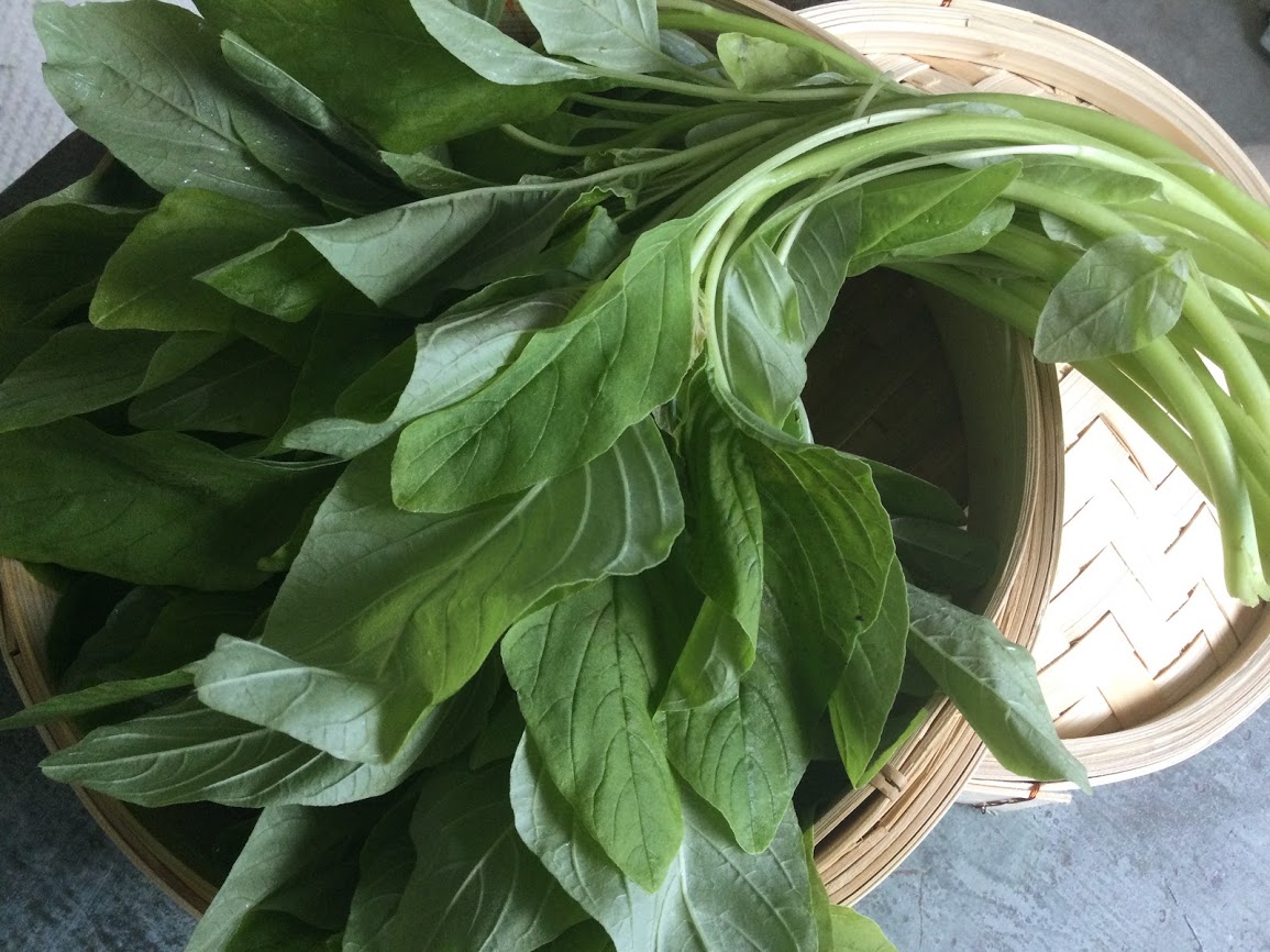 – 4-5 revonhännän latvaa (n. 20-30 cm) /salaatinpäitä/kesäkaalia lohko tai pari/paksoita/mangoldia/lehtikaalia tms.